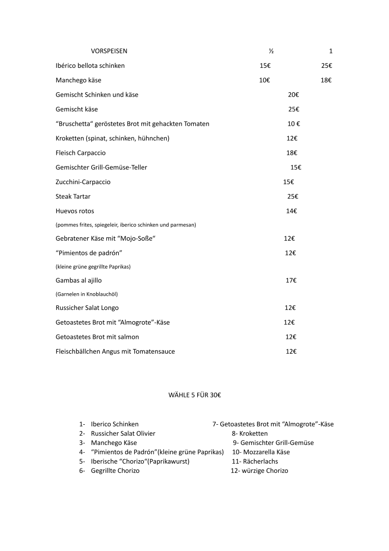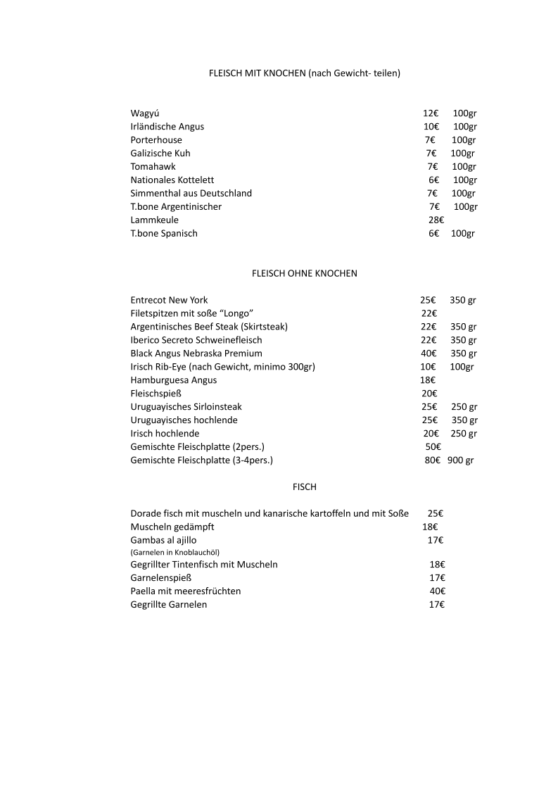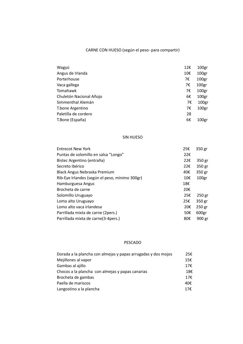 Longo Steak House Menu